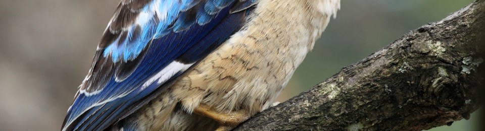 martin-chasseur gant ailes bleuesEarly Australians must have thought they were hearing things when they came across their first Kookaburra. If they hadn’t heard of this crazy sounding bird and couldn’t be sure where the laughter was coming from, it must have been a puzzle. When we were kids they were known as Laughing Jackasses.